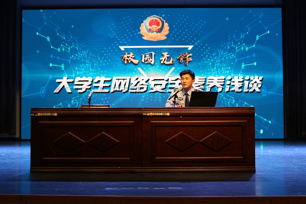 “同学们的银行密码是姓名拼音首字母加生日吗?”“平时手机WIFI都是开放的吗?”“有没有把快递单号撕掉的习惯?”韩志华首先抛出一连串的生活日常安全问题,提醒同学们要加强保护个人安全信息的意识。接着他从增强网络安全防范意识、提升网络信息甄别能力、自觉抵制网络不良诱惑等3个方面,结合具体真实案例分析,提醒同学们要掌握基本的网络基本操作技能、信息处理和甄别能力、网络道德文明意识等网络素养,并且着重围绕电信诈骗讲解了案件主要类型、特征及防骗技巧。