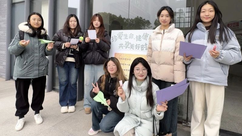 在“润心美愈,画解心情”绘画作品征集活动区域,同学们或三两成群轻声交流创作思路;或独自沉浸在对校园之美的回忆与勾勒中,用画笔细腻地描绘“我常走的校园小道”那熟悉的砖石纹理、斑驳树影,以及“被遗忘的小角落”中静谧的花草、陈旧的石凳。尽情抒发着内心深处的情感与对校园的独特感悟。即兴演奏环节设置在专门的音乐体验空间,温馨的灯光与舒适的座椅环绕四周。同学们怀揣着好奇与期待,或自信地拿起话筒唱出心中旋律;或在一旁专注聆听。在音乐的海洋里,他们放大感官系统,全身心地感受每一个音符的跳动,让压力随着旋律飘散,使情绪在节奏中得到舒缓与调和。emoji 表情猜词游戏区域充满了欢声笑语与紧张的氛围。贴纸上由一个个鲜活的emoji 表情组合而成的谜题,同学们围坐在一起,时而眉头紧锁,苦苦思索对应的四字汉语成语;时而灵感乍现,兴奋地喊出答案。在这一过程中,大家的观察力、成语知识储备以及联想能力都在无形之中得到了显著的提升。“烦恼远离”放飞烦恼大赛的场地选在开阔的室外。广场地上,同学们领取彩色的纸张,郑重地写下心中的烦恼,随后将其仔细折成形态各异的纸飞机。他们站在起飞线前,眼神中带着对烦恼告别的坚定,奋力将纸飞机掷向远方。纸飞机在蓝天绿地间划过一道道优美的弧线,仿佛烦恼也随之远去,现场的气氛热烈而又充满希望,同学们以这种独特且充满仪式感的方式,与烦恼挥手作别。