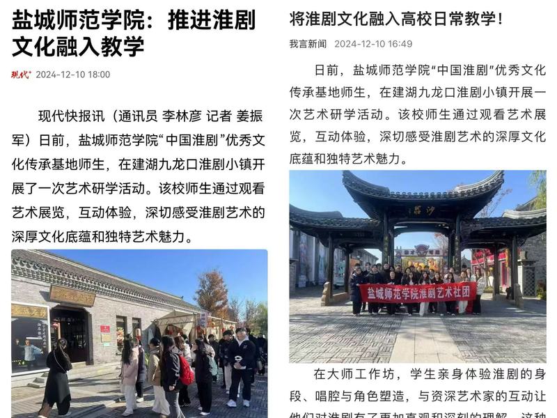 近日,公司淮剧研究团队的校外实践活动备受瞩目,现代快报、我言新闻等主流媒体纷纷报道,引发社会各界广泛关注,掀起淮剧传承与创新的热潮。