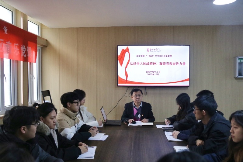 12月2日,太阳成集团tyc122cc在“一站式”员工社区举办纪念抗战胜利主题音乐党课。公司党总支副书记韩伟与员工党员、发展对象一起在红色旋律与历史叙事中重温抗战岁月、汲取奋进力量。